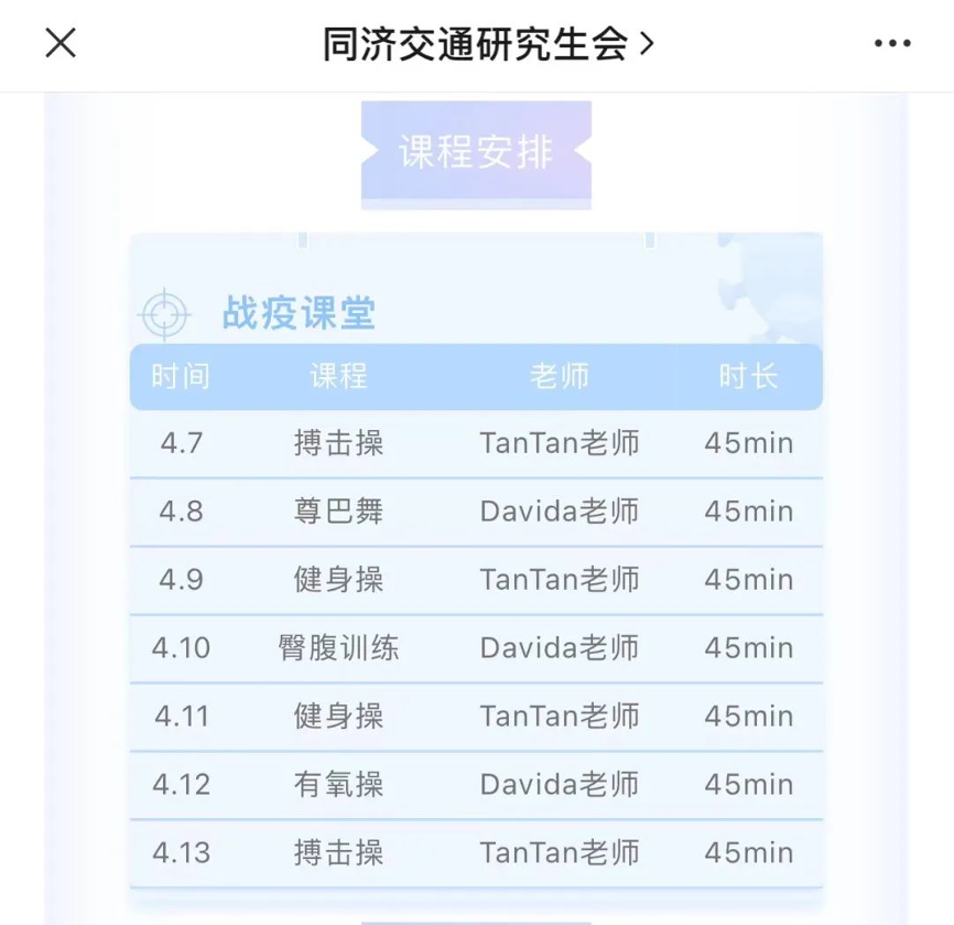 优秀的交通学子们学习之余仍不忘强身健体,公司也开展了由院研究生会、员工会主办的线上健身课程,动动脑筋一起来打卡!