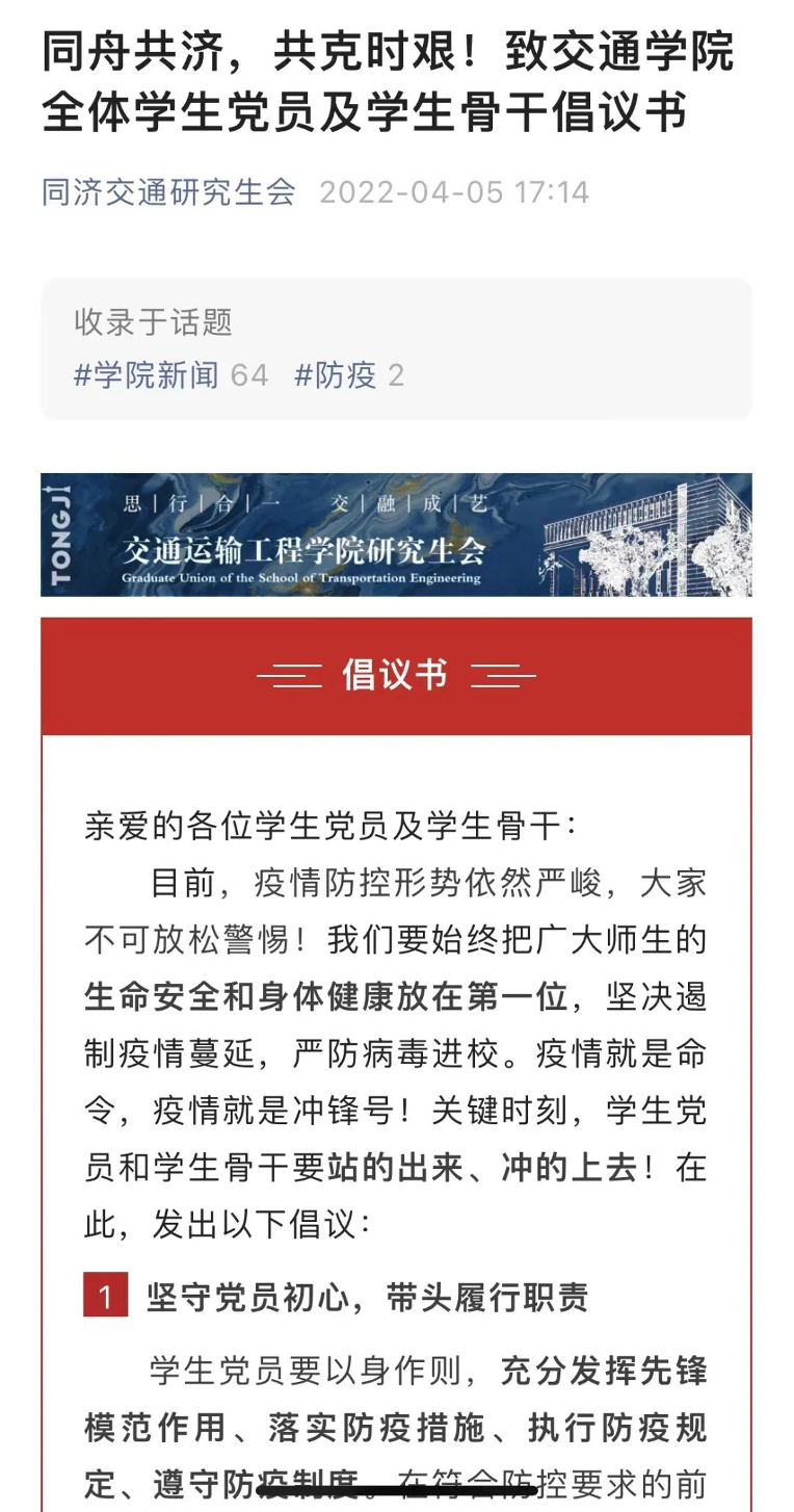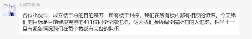 网格化管理体系建立不久,公司便发布“致全体研究生倡议书”和“致全体员工党员及员工骨干倡议书”,进一步明确特殊时期的防疫规则,增强同学们战疫的信心和凝聚力,调动党员及员工干部冲锋一线的意识和行动力!