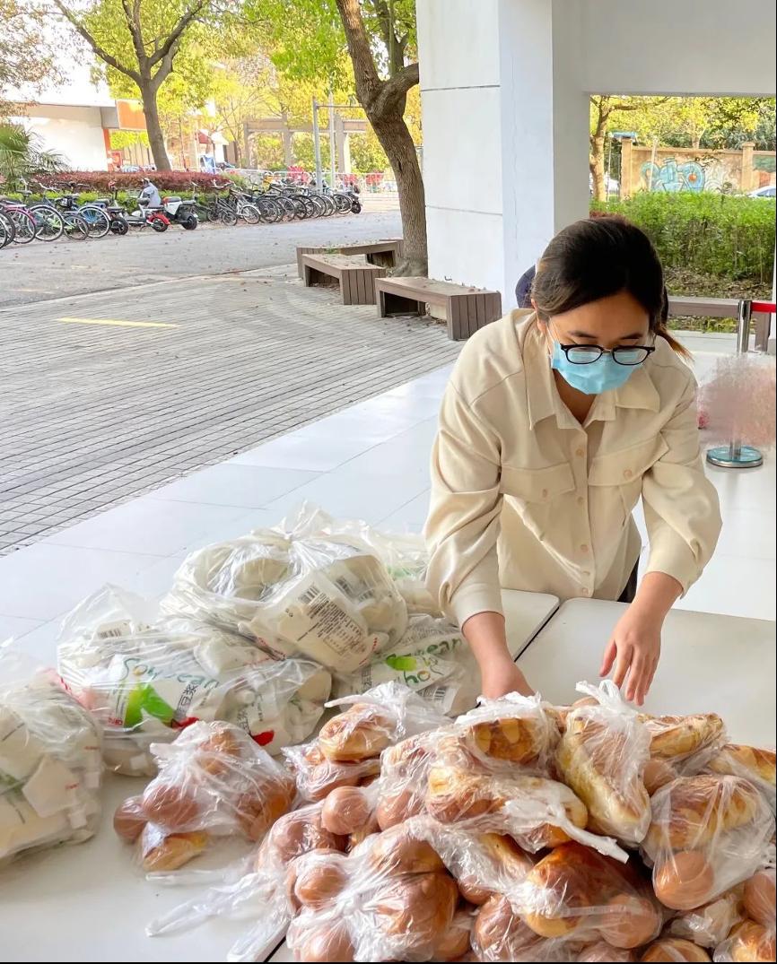 集团老师们第一时间捐出刚刚收到的上海市总工会慰问物资,连夜打包,保障封控楼宇同学需求。