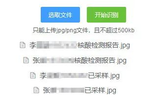1、接收来自前端的截图文件列表。用户在页面批量选取上传核酸检测截图文件,前端通过请求将这些文件发送给本地后端,后端服务器接收并进行下一步的识别处理。