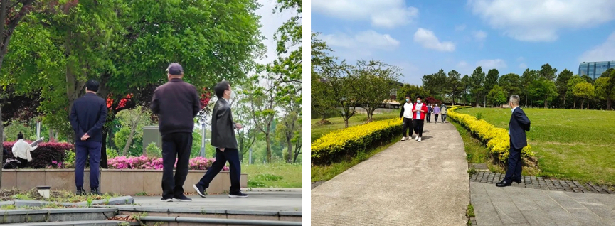 王映副书记(右)负责员工工作整体安排、组织同学参加健康走活动