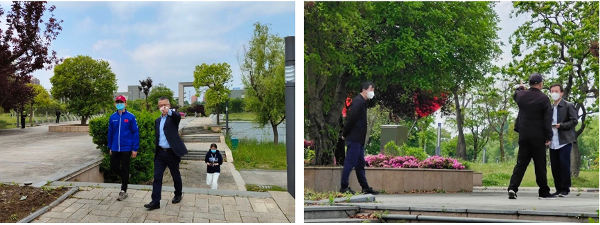 校常务副书记冯身洪、副董事长童小华、嘉定校区党工委副书记覃文忠与公司教师共同参加今天上午的员工出楼活动