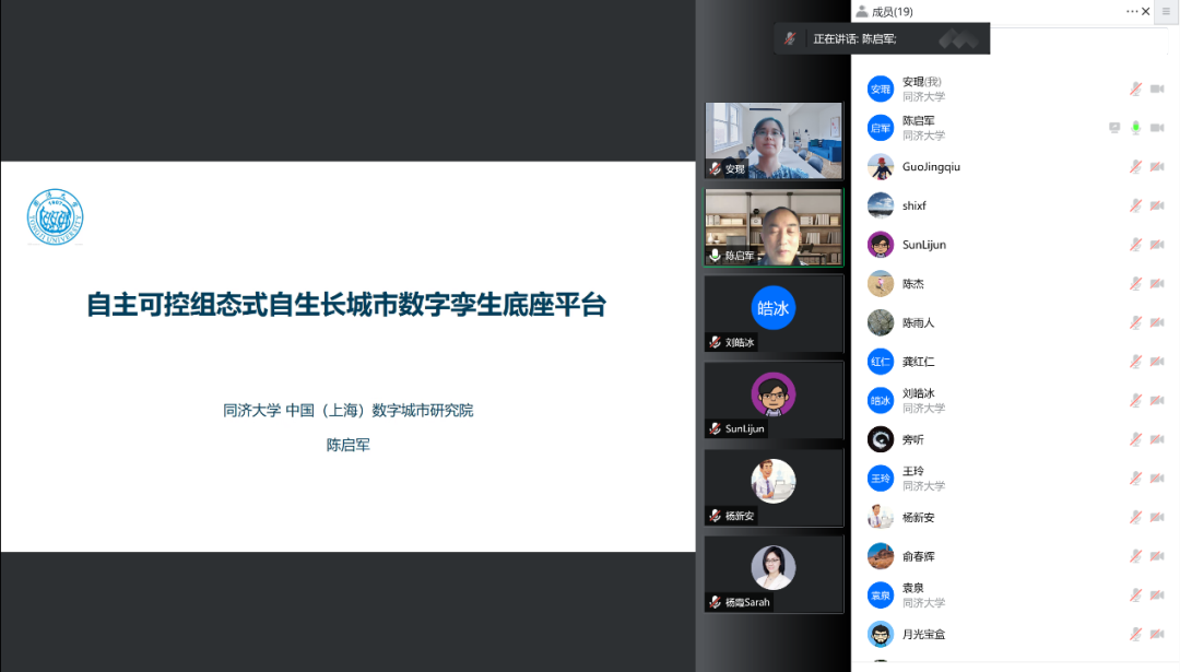 本次活动以“数字城市与交通”为主题,邀请伟德国际1946数字城市研究院执行经理陈启军教授详细介绍数字孪生发展的前沿趋势。陈经理从数字孪生的发展历程、国内外应用案例、关键技术、典型场景四个方面展开介绍,提出“底座+场景”双驱动发展模式,特别指出解决数据孤岛问题,让数据流动起来是数字孪生应用的关键。与会老师在数字城市的数据安全、自上而下还是自下而上的数字孪生发展路径、通用或专用的发展模式等方面展开热烈讨论。