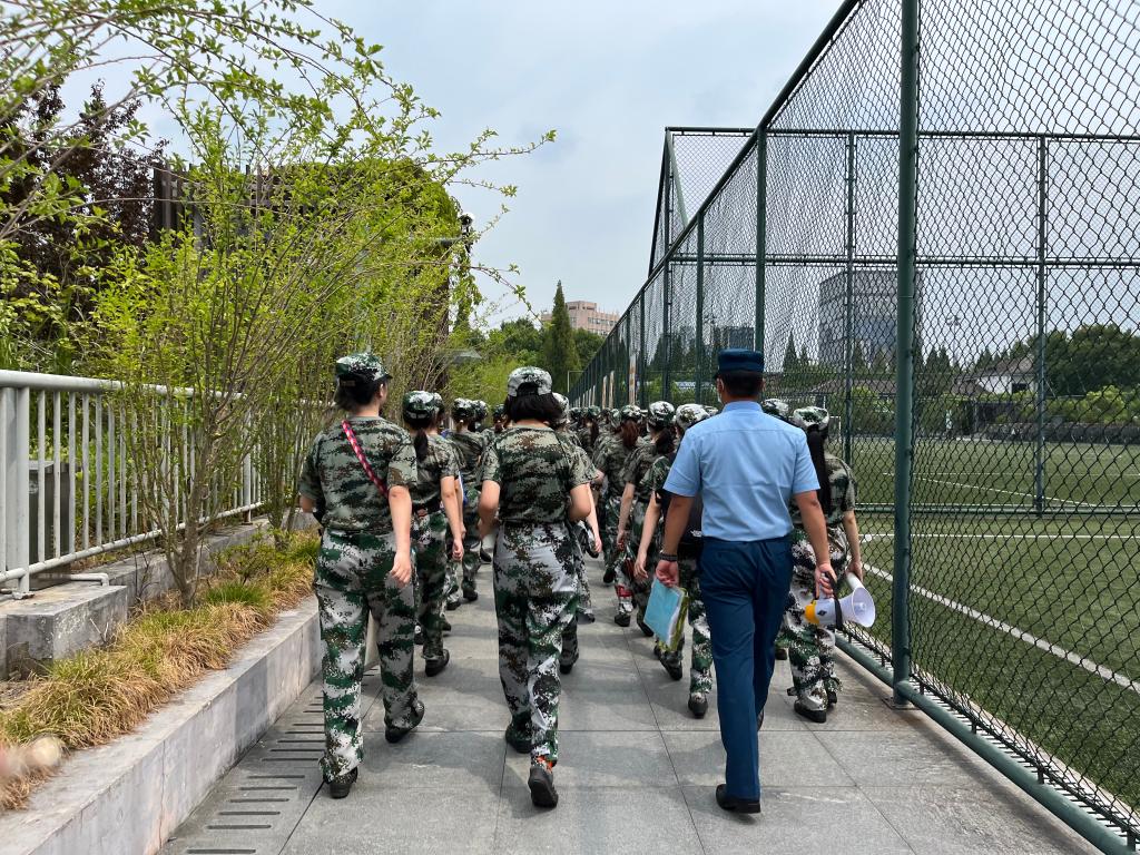 女生的训练内容还有徒步拉练,即负重环绕公司行走,每位同学左手一个水壶,右手一个挎包,肩上一个大背包。开始时,这些物品的重量对于刚刚搬完宿舍的同学们来说还不足为惧,但是渐渐地,随着行走距离的增加,肩上的背包仿佛变成了一个千斤顶,压得同学们气喘吁吁,手上拎着的物品仿佛变成了铁块,同学们的胳膊逐渐感到酸胀,身上的力气逐渐被抽干,被汗水浸透的迷彩服紧贴着肌肤,浑身上下没有一处好受,在这种情况下,仍然有大部分同学咬牙坚持了下来。“千里驰骋练本领,行军路上逞英雄”,这次的负重前行让同学们体会到了军人们进行跋涉时忍受身体的疲累,为了胜利的目标而坚持的精神。