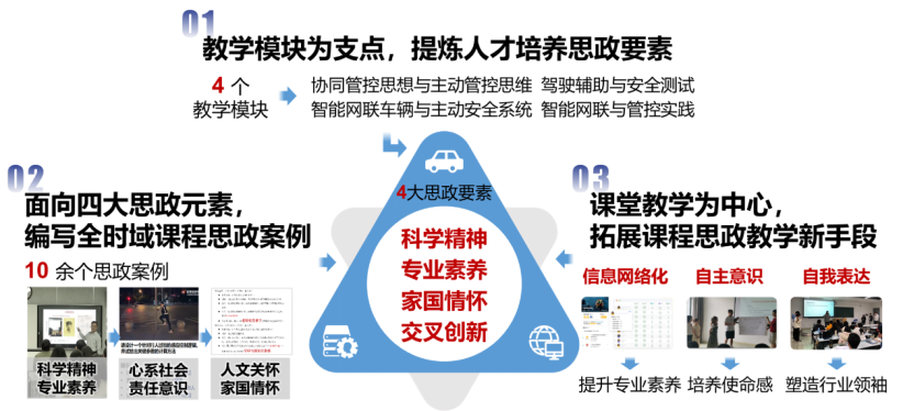 《交通管理与控制》由公司吴兵教授负责,通过将课程思政内涵有机融入课程专业知识体系和课程作业,实现了思政要点和专业知识点的一体化教学。未来将持续扩充课程思政案例,加强对外交流合作,完善课程思政评价体系。