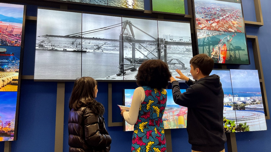 在中国港口博物馆,同学们跟随讲解员了解到中国先进港口的运作过程及其规模,充分运用5G、云计算、物联网、北斗导航等新一代自主可控先进技术,使其数字化智能化,赋能港口进行转型升级,加快如宁波舟山港等大型港口的集装箱码头和散件码头的自动化建设。