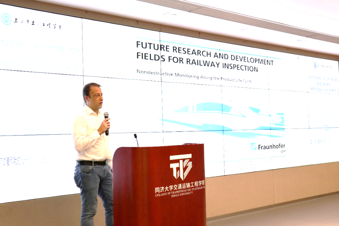 此外,中国铁路上海局集团有限公司谭社会教授级高工作了题为《高速铁路线路平顺性调整和控制技术》的报告;德国弗劳恩霍夫协会无损检测所Christian Conrad作了题为《Future research and development fields for railway inspection》的报告;上海睿而维科技有限公司黄俊飞高工作了题为《基于设备感知及AI算法辅助轮轨耦合动力学的轨道结构智慧运维》的报告。