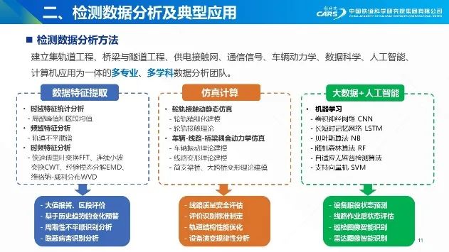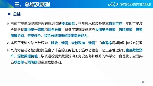 会上中国铁道科学研究院基础设施检测研究所柯在田研究员作了题为《铁路工务基础设施检测评价技术创新与实践》的报告,介绍了我国铁路工务基础设施检测设备的类型、检测项目及特点;阐述了轨道几何、车辆动态响应、轮轨作用力、巡检图像、地质雷达等多源检测数据驱动的工务基础设施状态评价技术,及其在轨道板上拱/路基冻胀等季节性病害预警、典型病害识别、道岔状态综合评估、轨道状态评价、轨道养护维修等方面的应用。