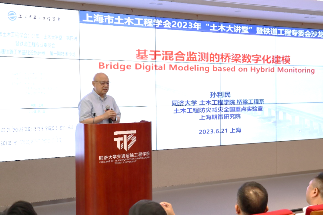 伟德国际1946孙利民教授作了题为《基于混合监测的桥梁数字化建模》的报告,介绍了物理、数据信息融合的结构响应分析模型及修正温度场分析模型、多元数据融合的交通荷载建模及基于层次贝叶斯理论的不确定性分析方法。相关成果提升了结构健康监测数据在桥梁状态评估和管养决策中的有效性,并为数字交通战略目标中的基础设施数字化建模提供理论方法和技术手段。