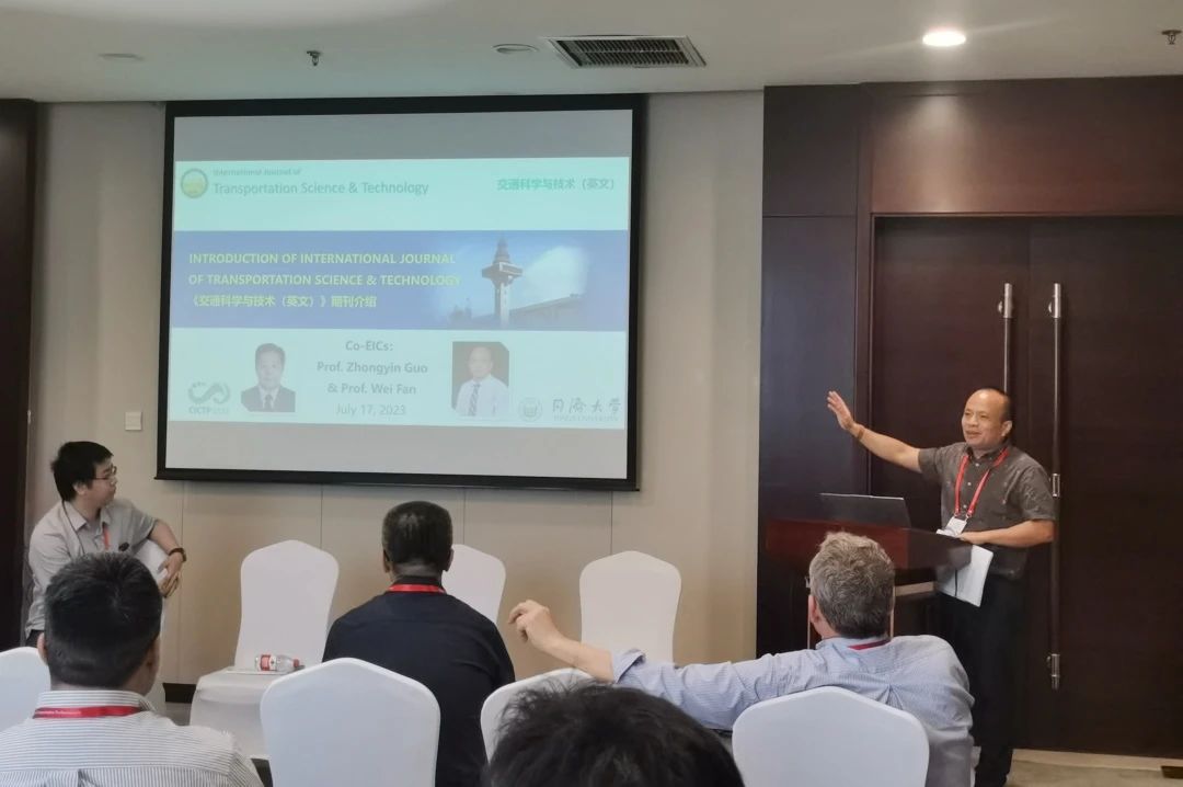 17号上午CICTP会议在融实国际交流中心知行厅组织举办一场期刊主编交流会,IJTST主编Wei Fan教授参加并介绍期刊的征稿范围和投审稿状况,与会者传阅了IJTST期刊的宣传册和优秀论文集等期刊文件。