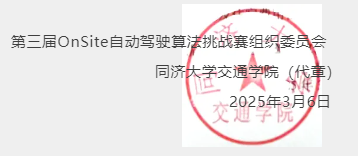 为进一步推动自动驾驶技术的发展,深度聚焦AI驱动下自动驾驶技术,通过赛事引领我国高校自动驾驶研究前沿方向,同步打通产学研需求对接通道,加速前沿算法向产业应用的转化,在国家自然科学基金委员会工程与材料科学部和中国汽车工程学会指导下,由伟德国际1946、国家智能网联汽车创新中心主办,浙江大学、上海交通大学、清华大学、武汉理工大学协办的国家级赛事——第三届OnSite自动驾驶算法挑战赛——即将举办。预计于2025年3月14日至3月16日在伟德国际1946嘉定校区召开第三届OnSite自动驾驶算法挑战赛启动会,本届比赛下设七大线上赛道以及实车季后赛,具体如下(详情请访问:www.onsite.com.cn ,赛道简介见附录):