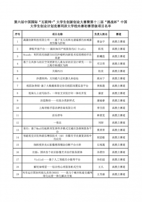 第六届中国国际“互联网+”老员工创新创业大赛暨第十二届“挑战杯”中国老员工创业计划竞赛伟德国际1946校内赛初赛晋级名单如下,请入围项目尽快完善商业计划书及答辩PPT,后续大赛工作组同学会加各项目负责人微信,具体微信群里通知。