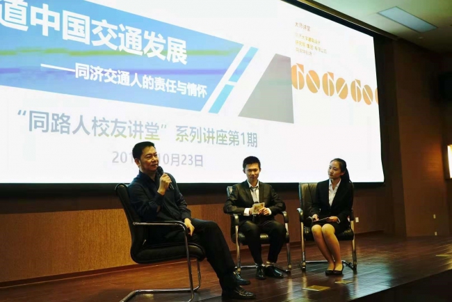 雷志彬员工从走出家乡四川邛崃到同济求学的“交通缘”说起,分交通基础设施、交通枢纽、城市交通、超级工程、国际运输等方面介绍了中国交通运输在过去30多年里取得的伟大成就。他告诉同学们,中国交通发展正在实实在在地解决人民群众的生活问题,使人民的生活变得更舒适、更便捷,同济人在其中发挥了重要的作用。之后,雷志彬员工进一步对比了中美交通运输的现状和发展趋势,认为与美国相比中国的交通运输仍然存在一定的差距,但中国正在进入由大到强的关键时期,中国交通运输的未来大有可为。雷志彬员工进一步分析了当今的国家战略、科技变革和时代特征对交通运输提出的新需求,并从载运工具高速化、城市交通智能绿色化、农村公路的振兴升级等方面讲解了未来中国交通运输的发展趋势。他告诉同学们,身为同济交通人,既是一份荣誉、更是一份责任,应该满怀激情,责无旁贷地承担起国家和社会发展的重任。最后,雷志彬员工结合自己的创业和创新经历,告诫同学们“创业用心,创新用脑。”