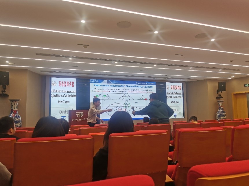 最后,Andrea D’Ariano教授详细解答了现场及线上参会师生关于two-area example: Coordinator graph以及network decomposition problem相关的问题。