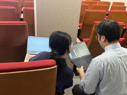 在实操环节,参会同学使用自己的电脑积极尝试,Taku Fujiyama教授也为大家提供了悉心指导,帮助同学们更好地理解列车时刻表的概念与建立过程,熟练运用Excel解决实际问题。