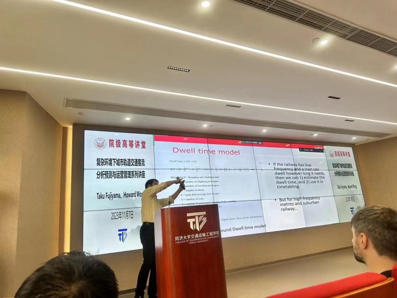 在第一场讲座中,Taku Fujiyama教授引入了在高峰期中列车停站时间的计算方法,并提出了新的观点:列车停站时间不是在时间表中预测规划出的,而是向计划频率努力实现的。此外,教授还给出了两个实现的关键点:如何实现乘客快速上下车?如何监管?