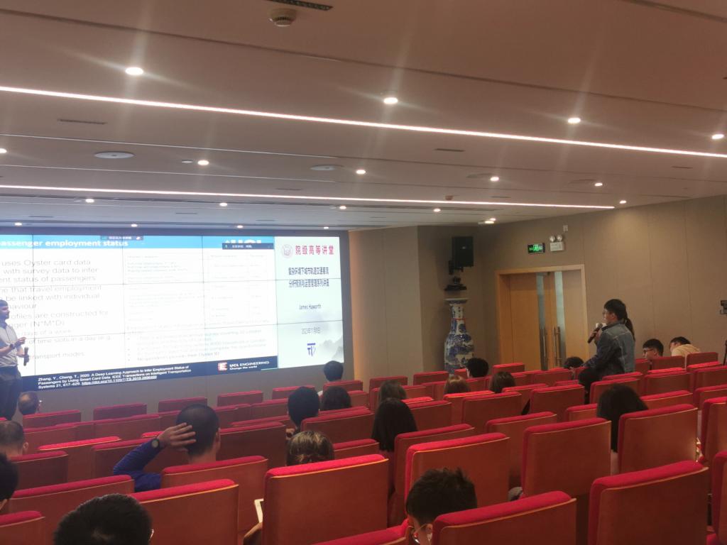 通过James Haworth教授的介绍,同学们对机器学习方法有了更加深刻的认识,并在提问环节踊跃发言,James Haworth教授对了许多先进的机器学习算法的原理和其如何应用于交通数据处理进行了解答,现场学术氛围浓厚。