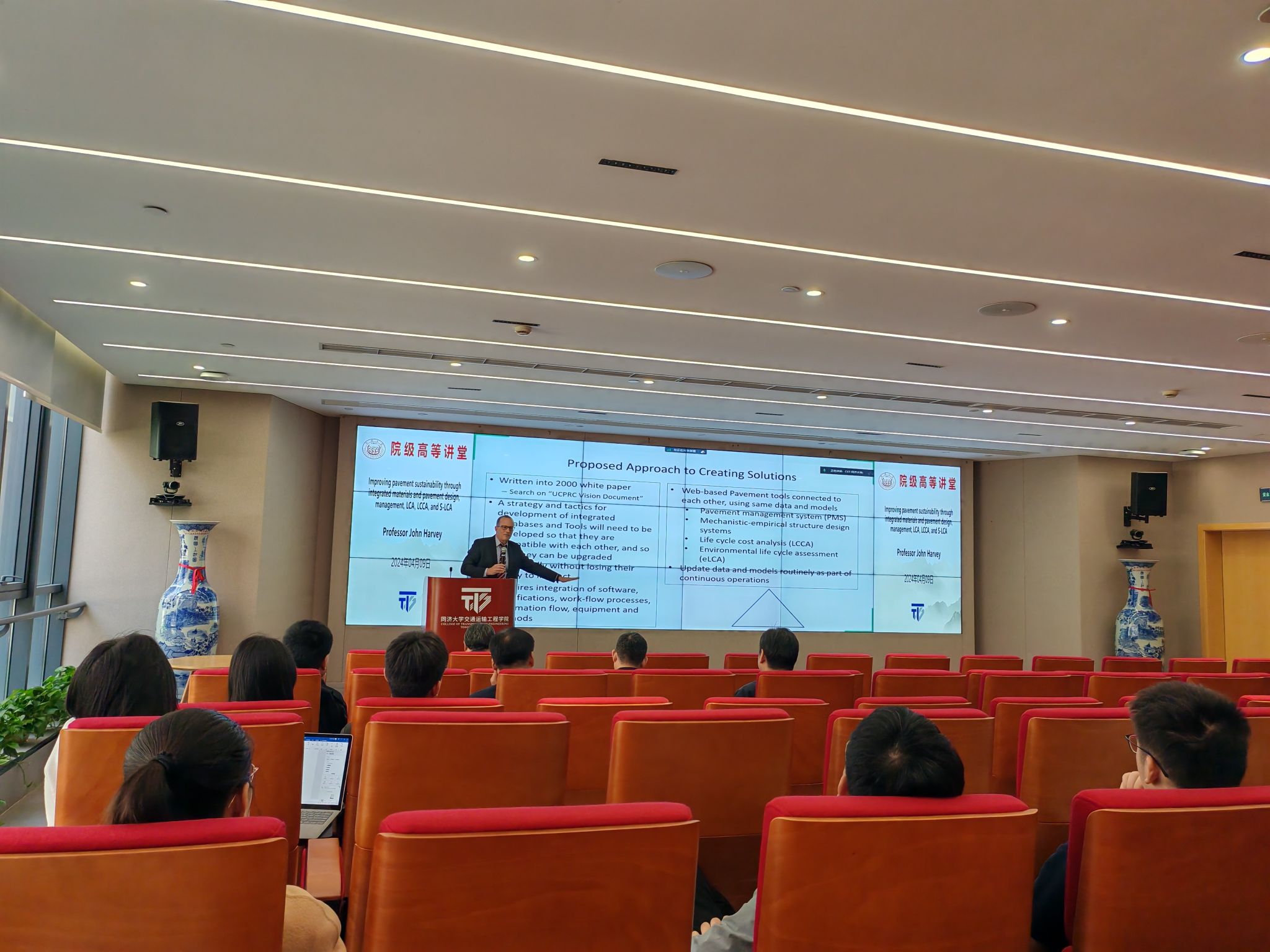 通过约翰·哈维教授的介绍,同学们受益匪浅,并在最后的提问环节踊跃发言。教授解答了现在的实现的道面零排放的一些具体措施,并指出道面可持续发展的发展方向和如何决策出更好的措施来提高零排放的效率等疑问,现场气氛热烈。