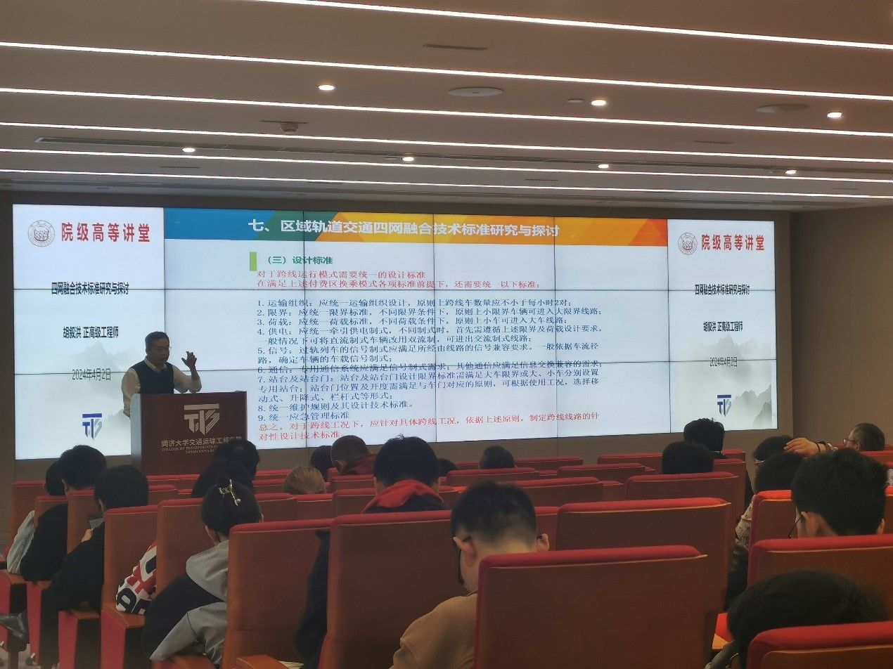 在场师生高度评价胡教授的讲座,并就目前的热点问题如上海市域(郊)铁路机场联络线与干线铁路并网运行可行性、大湾区四网融合相关标准和规范的应用范围与拓展问题与胡教授展开了深入的讨论交流。