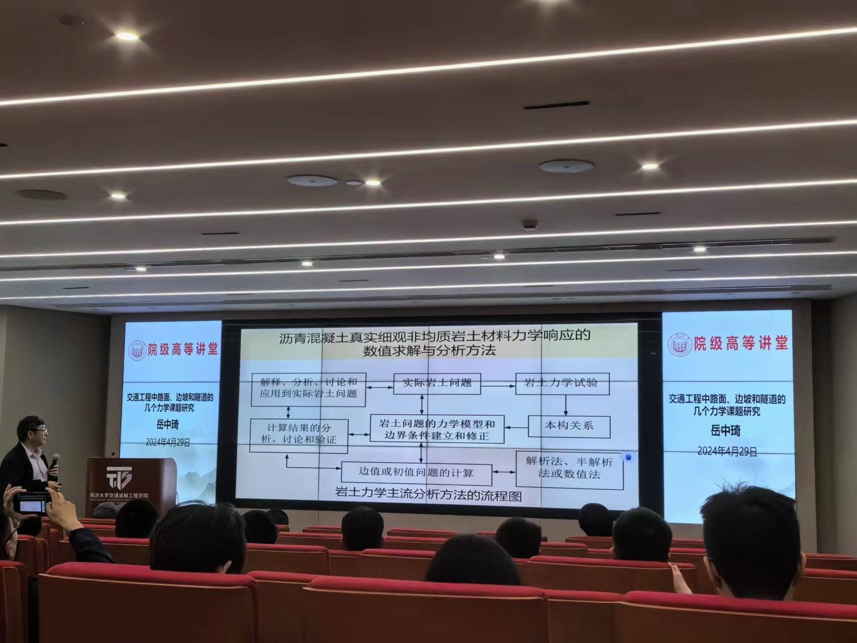 2024年4月29日下午15:30-17:30,院级高等讲堂于伟德国际1946(通达馆)103会议室成功举行。本次讲座的主题为:交通工程中路面、边坡和隧道的几个力学课题研究。王书玲助理教授邀请了来自香港大学工程公司的岳中琦教授为大家带来了精彩的报告。