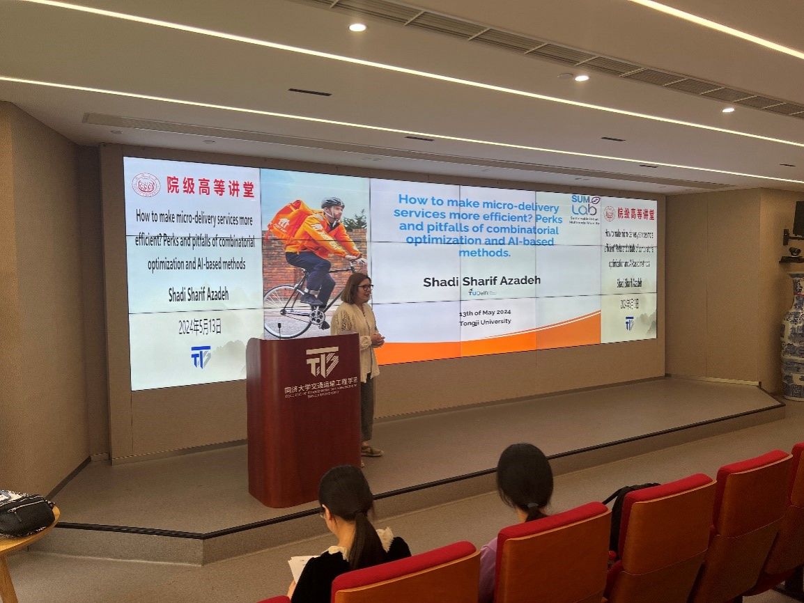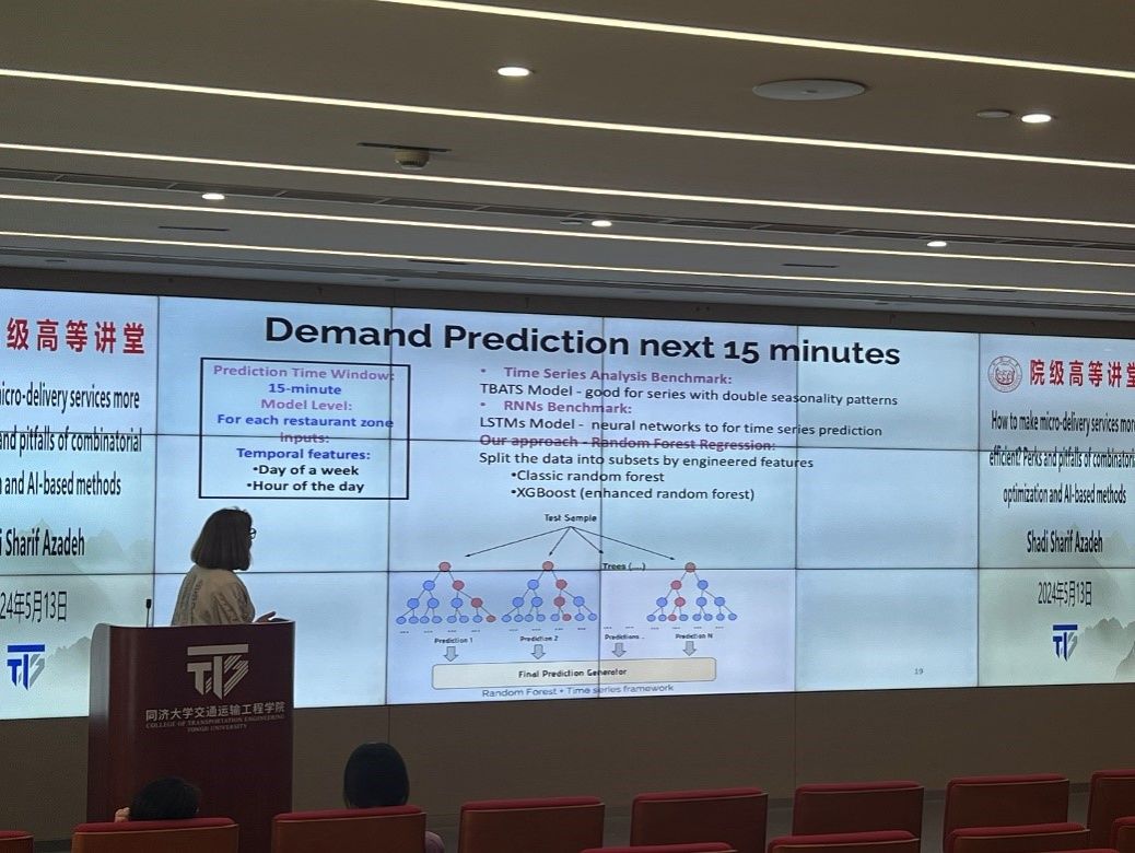 在讲座主题一中,首先,Shadi Sharif Azadeh副教授强调了优化递送资源实时管理的重要性,微型递送服务作为一种可持续的即时交付解决方案,具有广阔的发展前景。然而,为了推广这些服务工具,我们需要提高它们的交付规划效率。这要依赖于对城市内需求分布的准确预测。精确、实时的需求模型对于提高这些系统的效率至关重要。