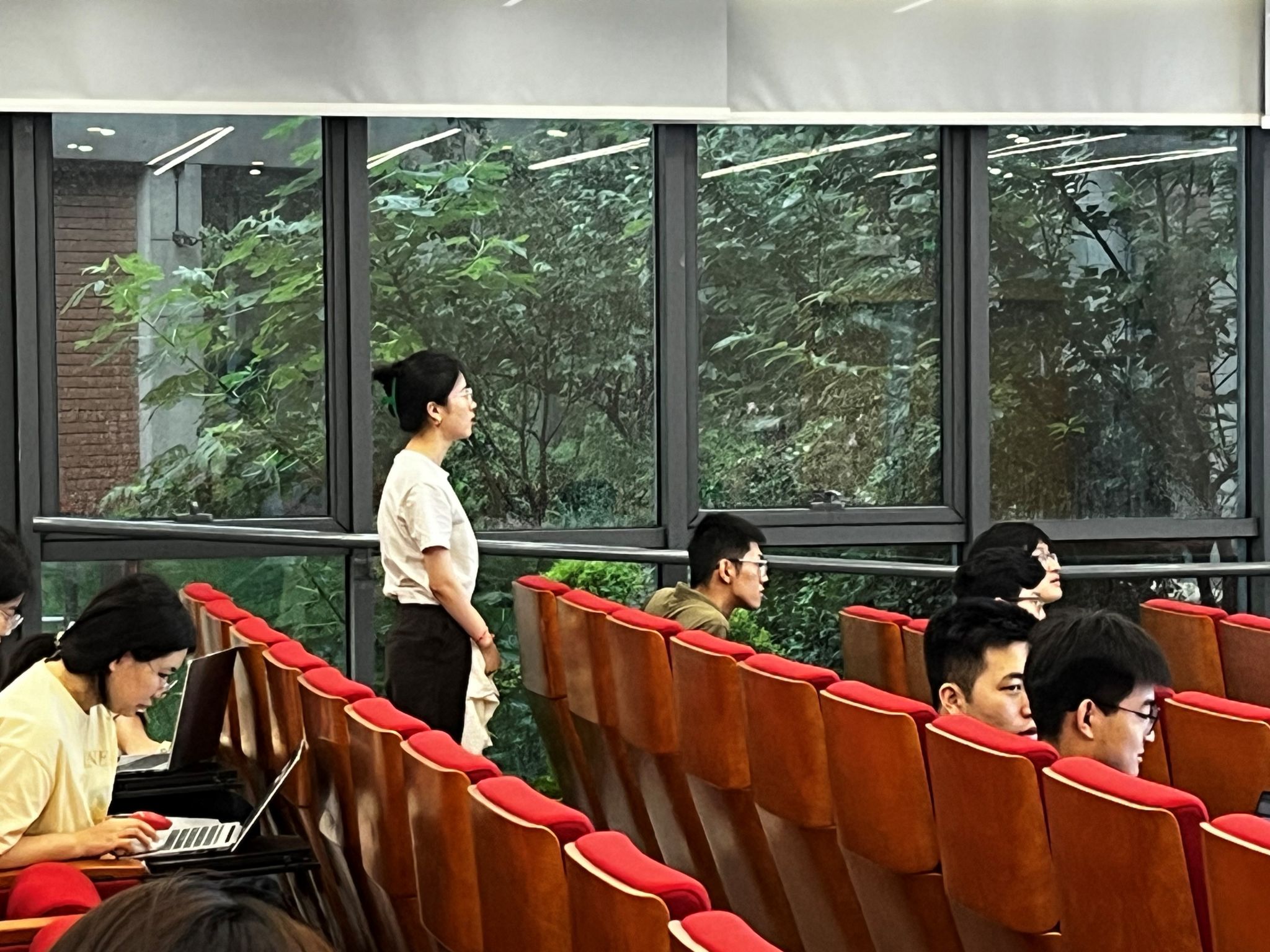 在交流环节,线下参会的同学积极提问,Qingwen Zhou助理教授回答了大家关于LCA边界条件的定义问题、机器学习与实际应用间的断层问题以及机器学习的数据获取等方面的一系列问题,并且强调AI可以作为很好的辅助工具,但相关的基础知识才是最重要的。最后报告嘉宾和各位老师合影留念,本次院级高等讲堂圆满结束。