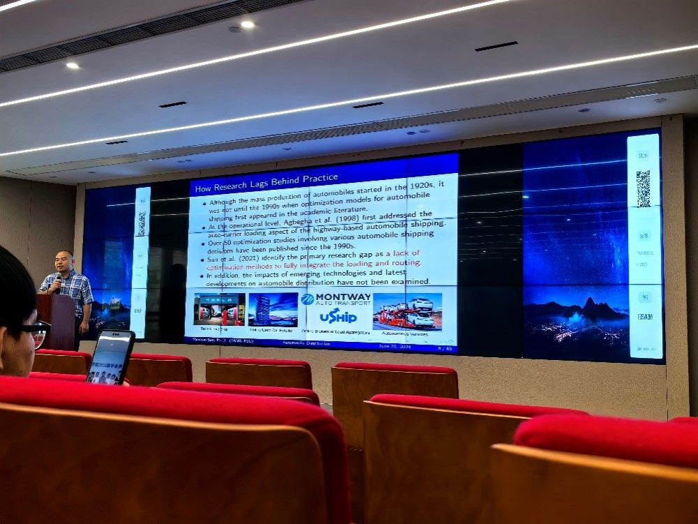 6月20日下午15:30-17:00,同济高等讲堂于伟德国际1946(通达馆)103会议室成功举行。本次讲座的主题为:“商品车运输中车辆装卸和运输车路径的联合优化”。讲座邀请了来自佛罗里达州立大学FAMU-FSU联合工程公司的工业工程副教授孙延硕博士。他专攻数学规划和大数据分析,并将其应用于交通运输和物流系统。他已在其研究领域的领先期刊上(包括IISE Transactions、Transportation Research Part A、B、C 和E)发表了近40 篇论文。目前,他担任美国国家科学基金会 (NSF) 资助的三个项目和佛罗里达州交通部 (FDOT) 资助的另一个项目的首席研究员 (PI)。他于2016年取得马里兰大学交通运输工程博士学位。