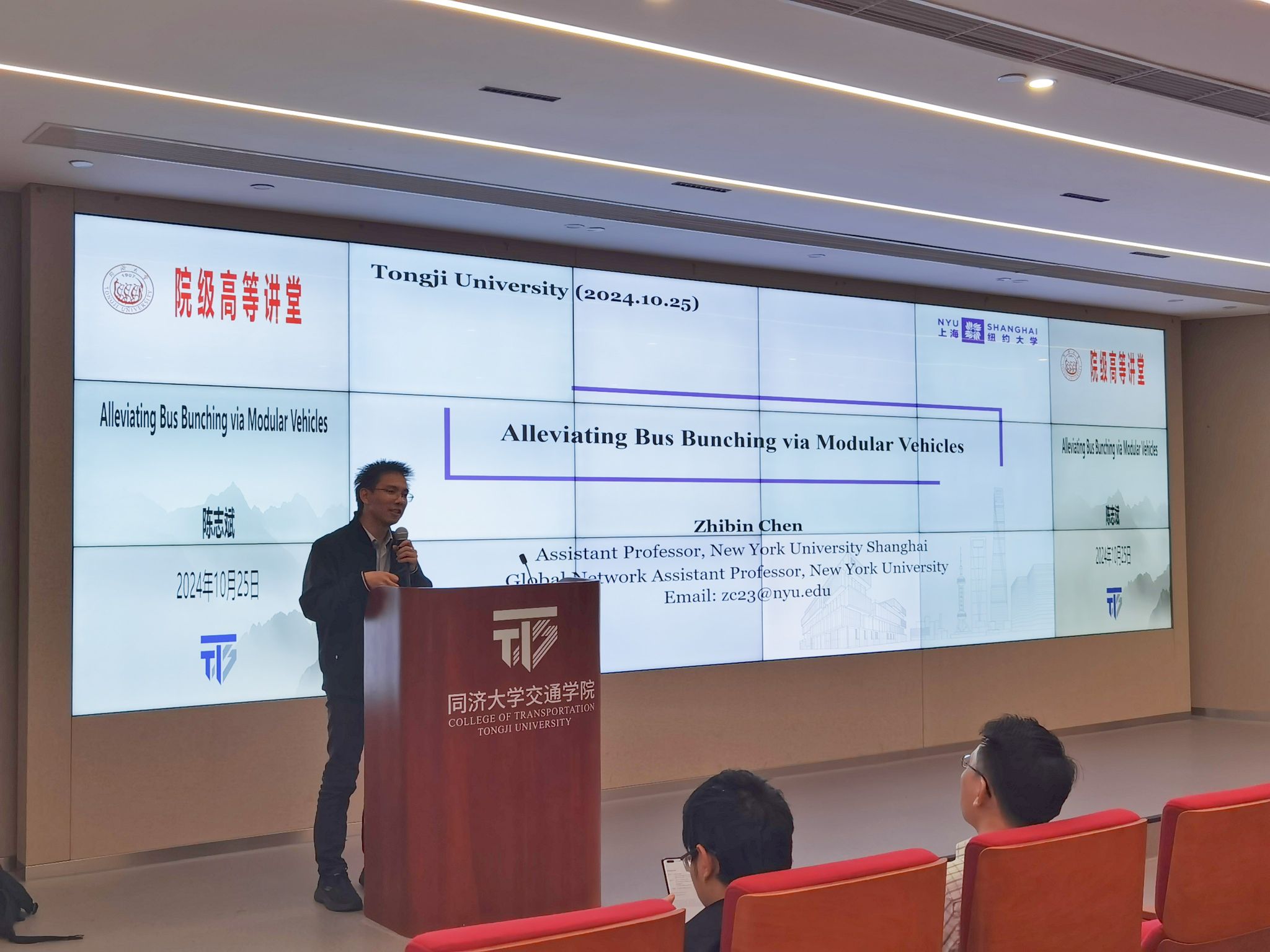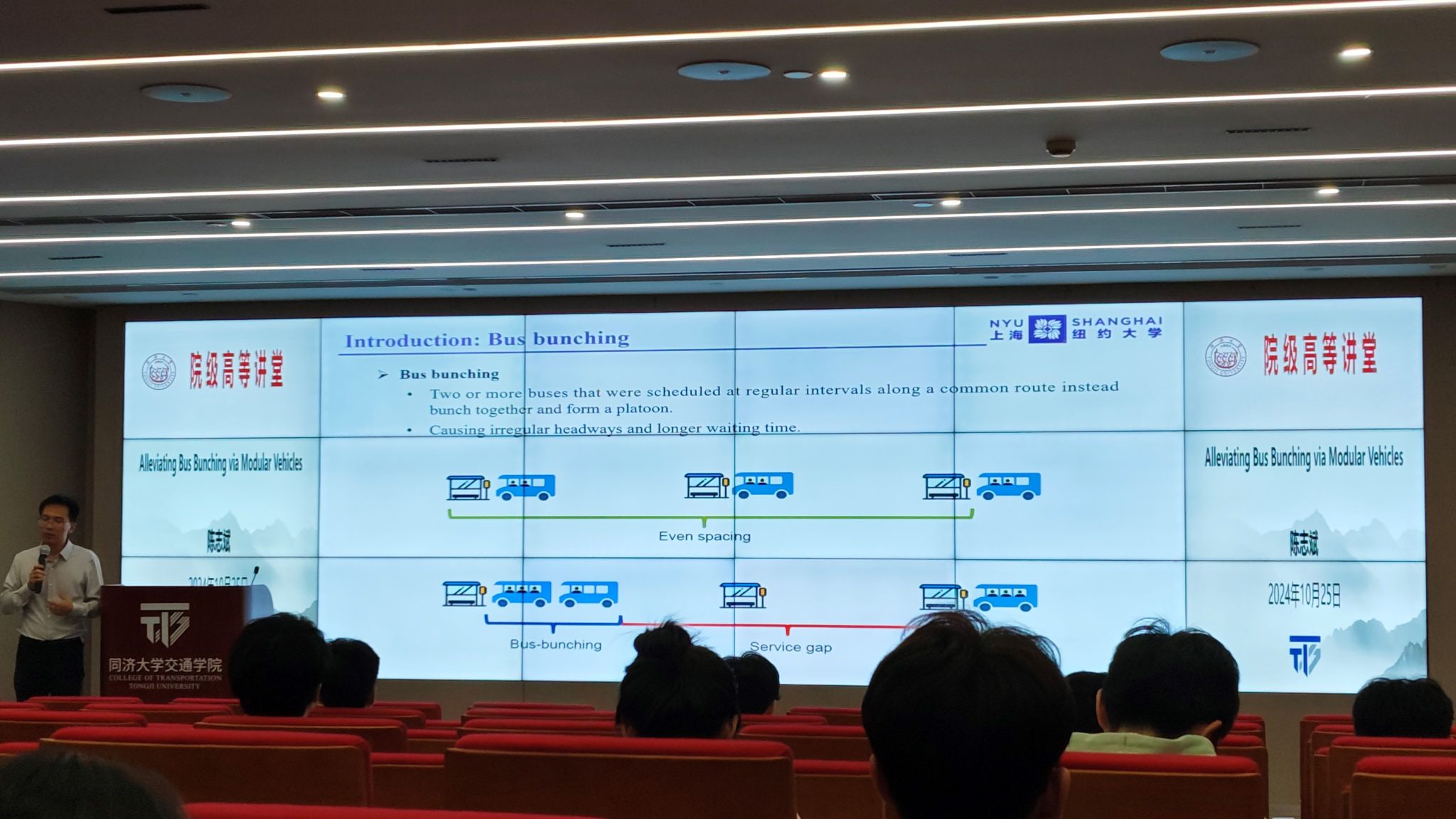 10月25日下午15:00-17:00,同济高等讲堂(院级)于伟德国际1946(通达馆)103会议室成功举行。本次讲座的主题为:Alleviating Bus Bunching via Modular Vehicles(通过模块化车辆缓解公交车串车现象)。讲座邀请了来自上海纽约大学的陈志斌博士为大家带来精彩的报告。