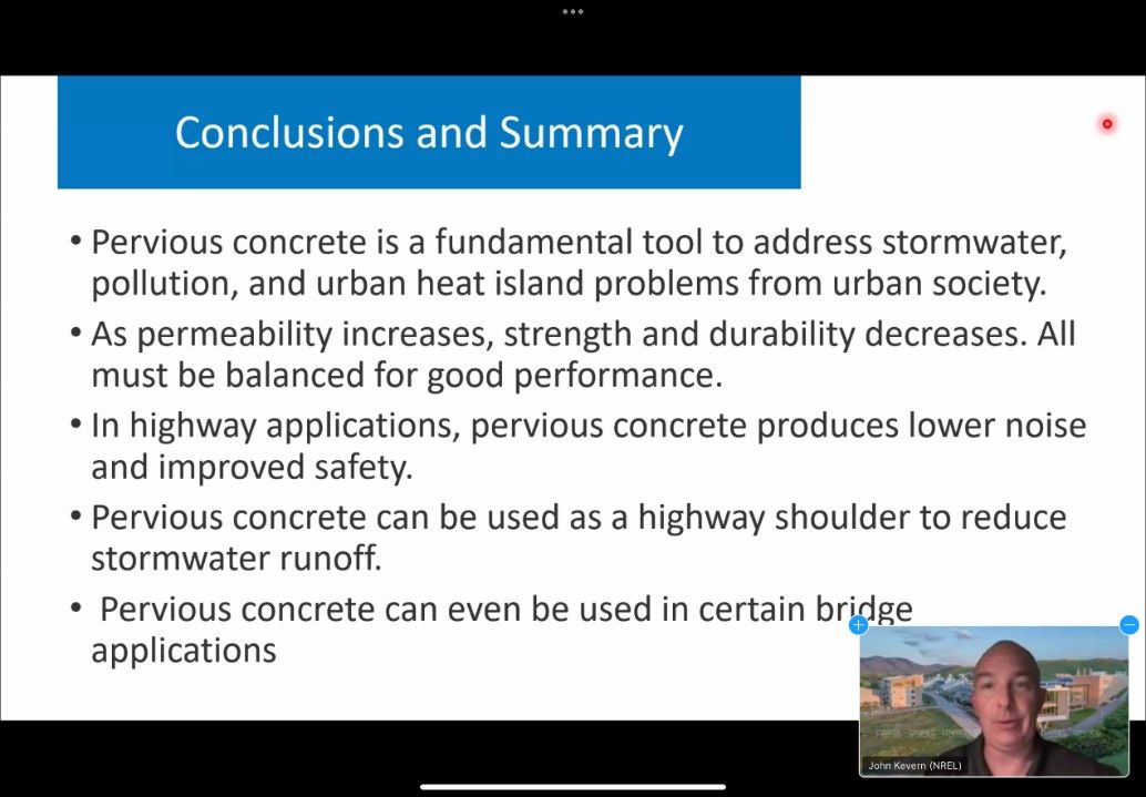 在总结中,Kevern博士指出虽然透水混凝土有诸多优势,但在实际应用中需谨慎平衡透水性、强度和耐久性。过高的孔隙率会提高透水性,但也会影响材料的整体强度和使用寿命。因此,在未来的研究和设计中,需要优化材料配比和施工工艺,以实现透水混凝土的最佳性能。