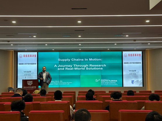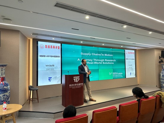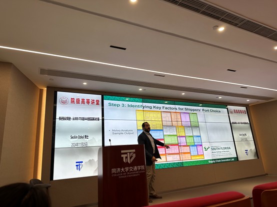讲座中,赛金·奥兹库尔博士讲授了南佛罗里达大学供应链创新实验室所开展的先进研究。该实验室的研究项目旨在应对物流和供应链管理中的关键挑战。主要研究的领域包括卡车停放、中转地理空间分析、缓解贸易不平衡和空载回程的策略、物流活动中心的发展潜力以及数字供应链的转型等。赛金·奥兹库尔博士介绍了基于GIS的空间建模、货运和交通优化工具(FTOT)方针以及情景分析等用于研究和实现优化物流网络、提高经济效率、减少环境影响的方法。并结合佛罗里达洲的实际情况讲述了改进货运流动、优化物流基础设施用地以及建模替代燃料供应链的具体策略。
