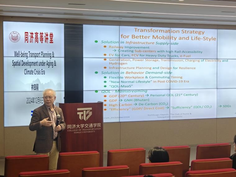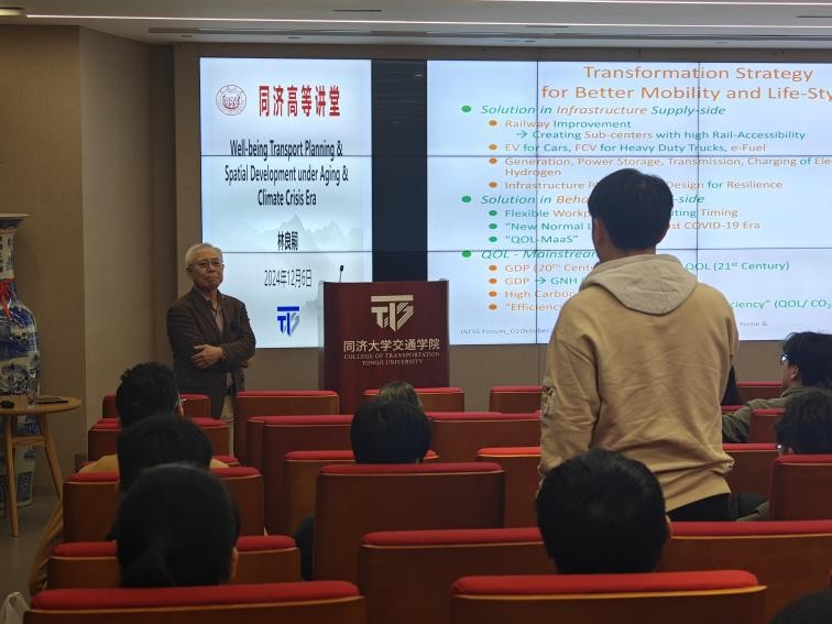 在论坛上,林良嗣教授以日本为例深入分析老龄化对交通需求和空间布局的影响,探讨如何通过智能交通系统、无障碍设计和老年友好型空间建设应对人口老龄化带来的挑战。同时,讲座还探讨了气候变化对城市生活质量的威胁,重点分析如何通过低碳、绿色的交通规划与气候适应性空间发展策略,提高城市的生态韧性和适应能力,确保在环境变化的背景下,老年群体及其他社会成员能够享有安全、便捷、可持续的生活环境。