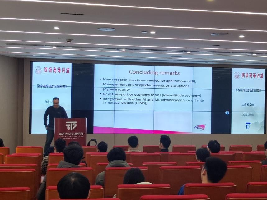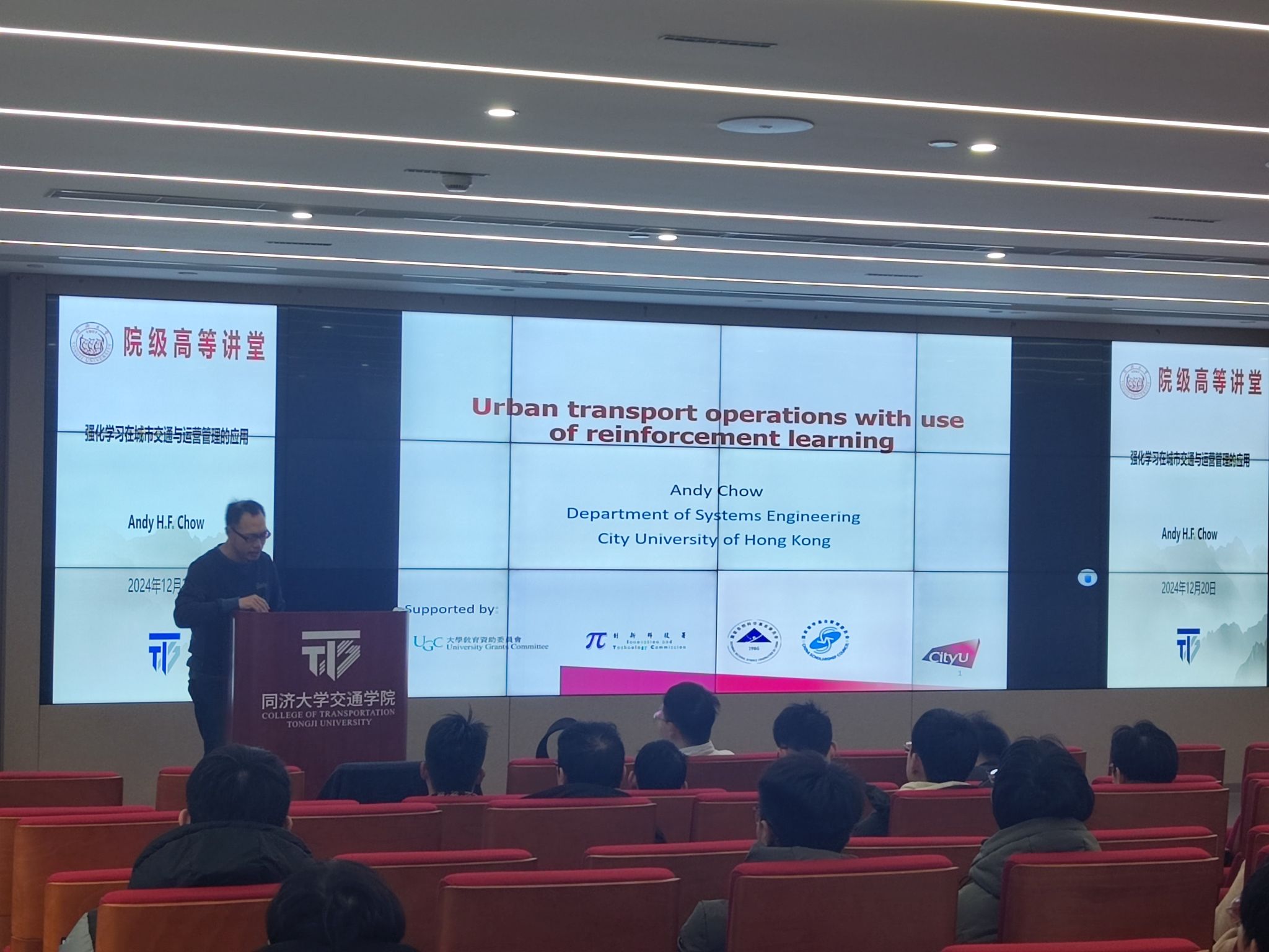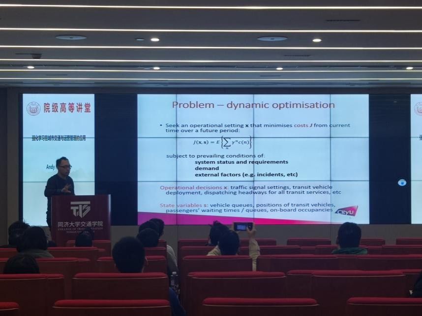 12月20日上午10:00-11:30,同济高等讲堂(院级)于伟德国际1946(通达馆)103报告厅成功举行,本次讲座主题为:强化学习在城市交通与运营管理的应用。讲座邀请了来自香港城市大学的Andy H.F. Chow博士,为大家带来了精彩的报告。