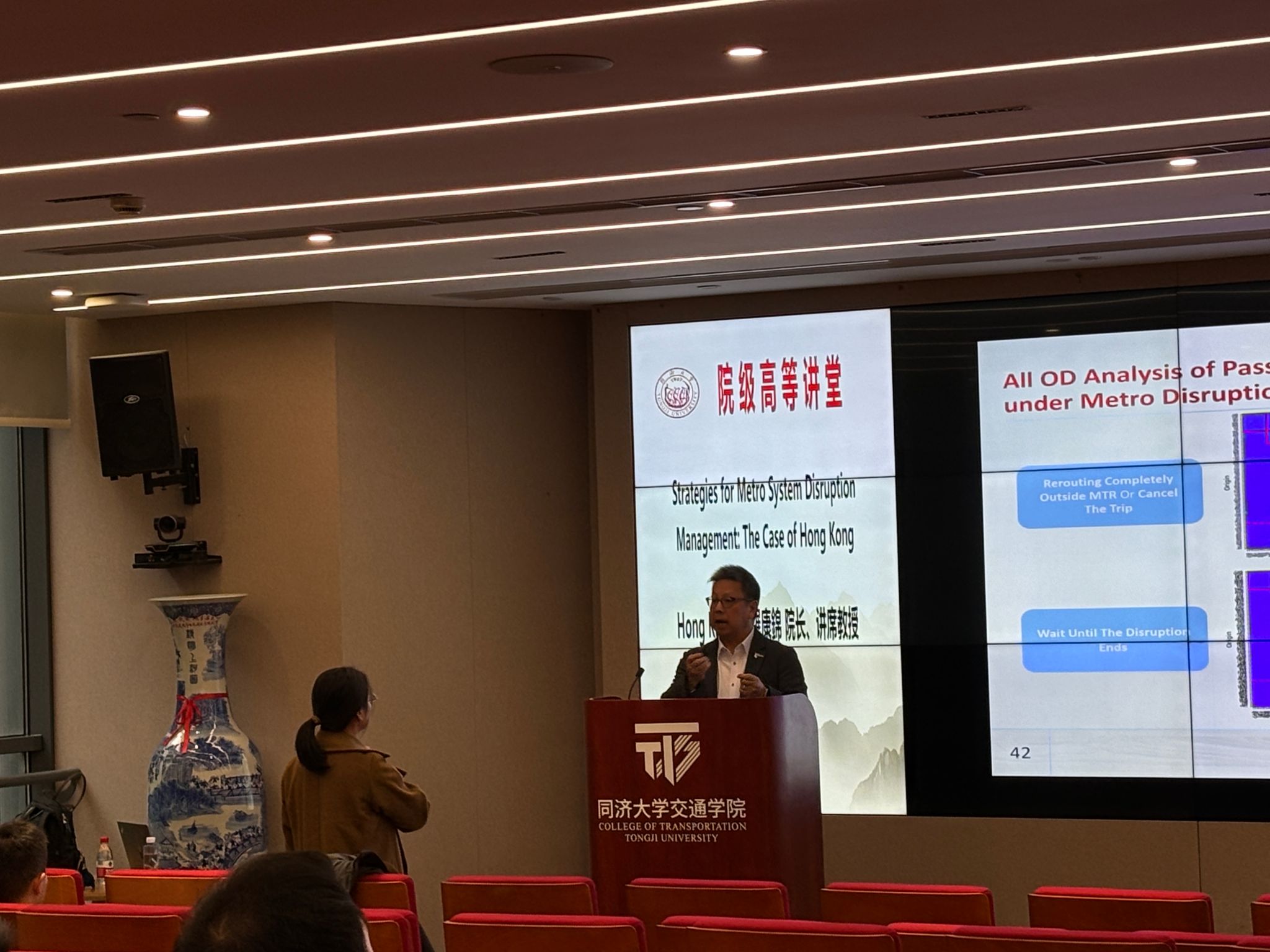 2025年3月3日下午15:00-17:00,同济高等讲堂(院级)于伟德国际1946(通达馆)103会议室成功举行。本次讲座的主题为:Strategies for Metro System Disruption Management: The Case of Hong Kong(地铁系统中断管理策略:以香港为案例),邀请到了香港科技大学工公司经理罗康锦教授(Professor Hong Kam LO)担任主讲嘉宾。罗康锦教授在交通和城市系统领域声誉卓著,研究方向包括智慧城市、动态交通系统建模、交通控制、网络可靠性和公共交通分析。他被评为世界大学学术排名(ARWU)中土木工程领域被引用次数最多的学者之一。此外,罗教授不仅担任多个国际会议召集人和期刊主编,荣获多项国际交通研究领域的奖项,并在香港担任太平绅士及多个专业学会会士。