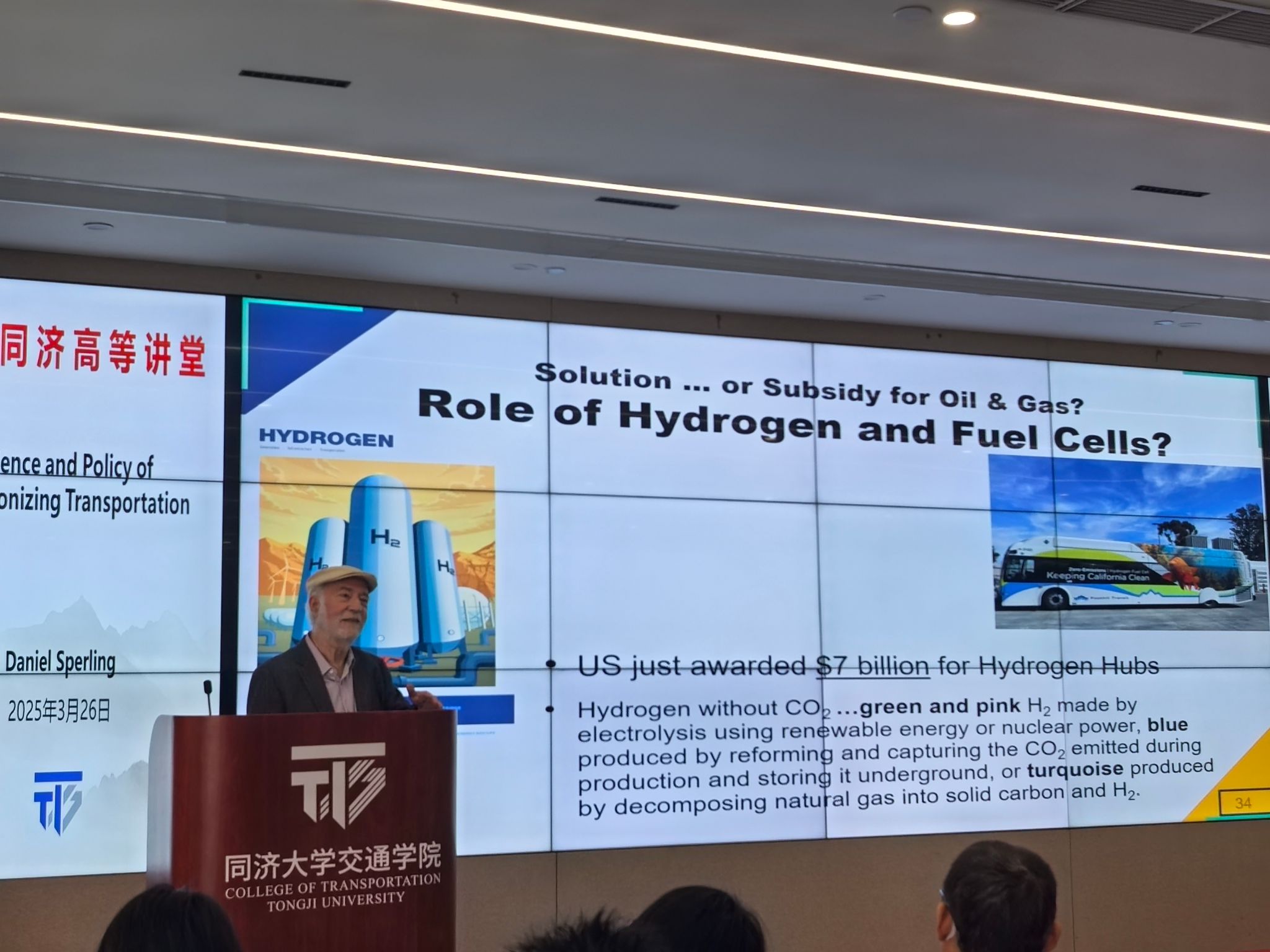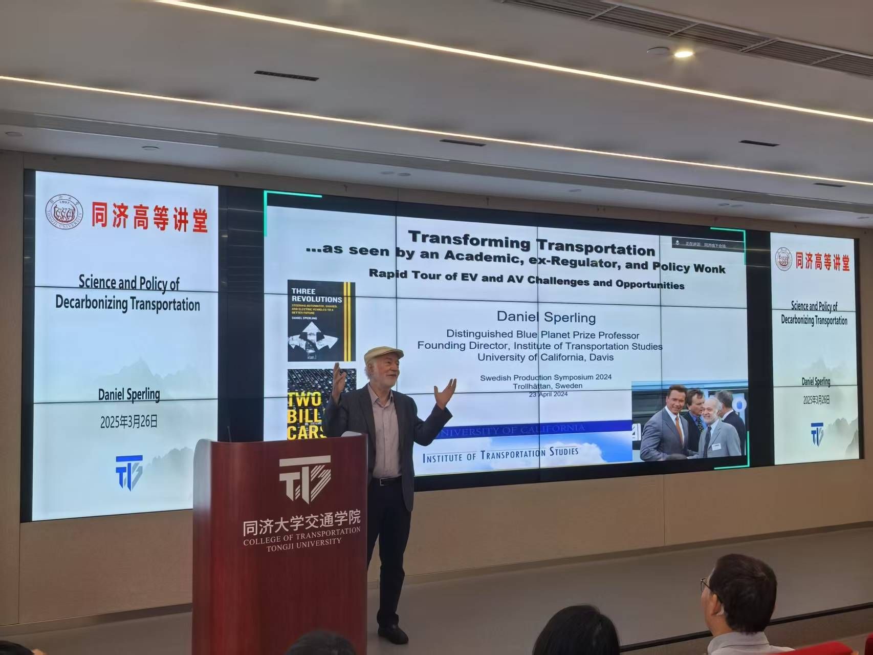 2025年3月26日上午10:00,同济高等讲堂(院级)于伟德国际1946(通达馆)103会议室成功举行。本次讲座的主题为:Science and Policy of Decarbonizing Transportation。讲座邀请了来自加州大学戴维斯分校交通研究所的Daniel Sperling教授为大家带来精彩的报告。