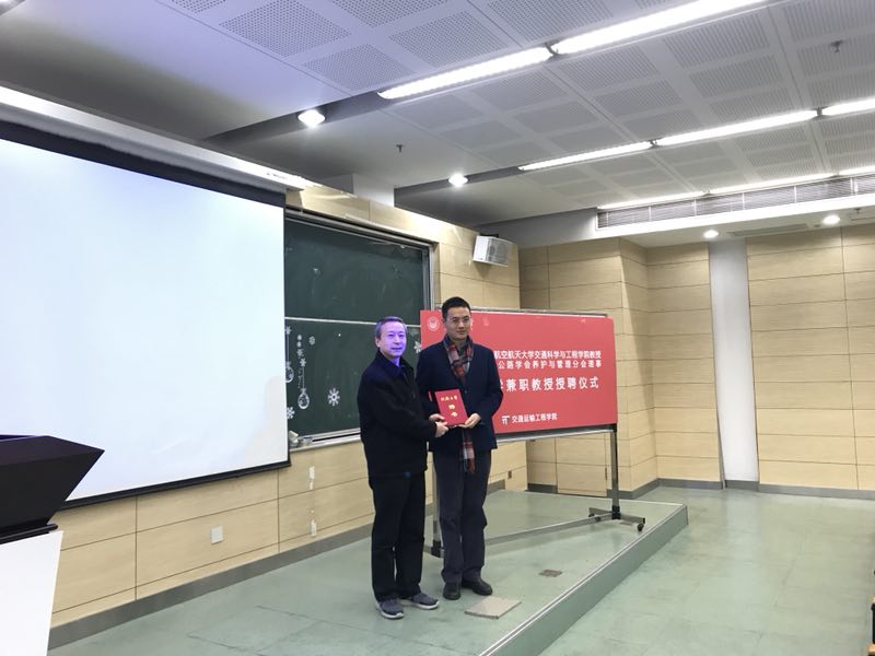 2017年12月27日上午9:00—11:00,第321期同路人学术论坛暨李峰兼职教授受聘仪式在通达馆103报告厅顺利进行。本次论坛邀请了北京航天航空大学的李峰教授作为主讲嘉宾。在论坛的开始,吴兵书记为李峰教授颁发了聘书,随后李峰教授介绍了自己在沥青路面裂缝处治材料和技术应用方面的研究工作以及在智慧道路基础设施方面的初步探索。