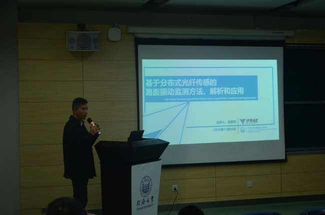 讲座中,针对道路和机场领域发展的新方向——智能铺面技术,各位博士在传感器选用、设计、安装、数据解析、算法实现、参数预估等方面展开主题汇报和研讨。议题包括沥青路面振动监测及应用、路基不均匀沉降智能监测、沥青道面行为智能监测及参数预估、混凝土铺面光纤振动监测及应用、基于分布式光纤的混凝土铺面板健康监测技术等。