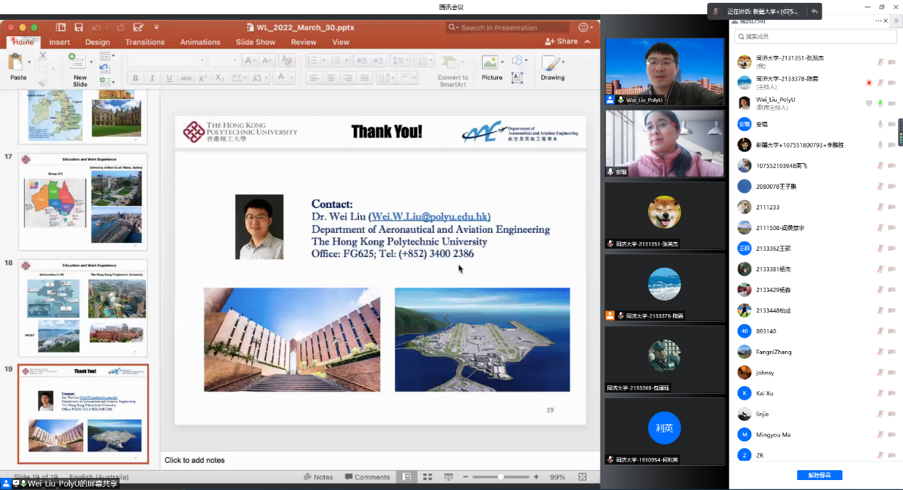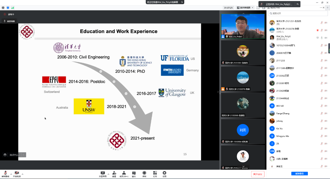 刘威博士不仅向各位同路人展示了关于共享停车的理论研究,还向大家介绍了自己的求学与工作经历。刘威博士根据自己的人生轨迹,向大家介绍了英国、澳洲以及中国香港地区的部分高校情况,并结合自身经历,分享了出国留学以及工作的一些生活状态,给了有留学想法的同学很大的启发。