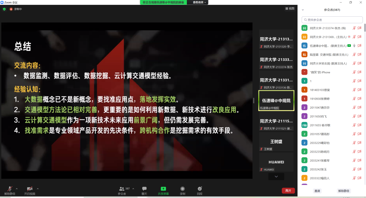 本次讲座促进了同学们对于交通行业、规划方向大数据技术应用了的了解,明晰了交通规划方向大数据应用的前景,从专业角度上解答了同学们关于交通数据采集、分析的诸多问题,同时也为有意向就职于规划设计单位的同学提供了宝贵的经验,获得了与会师生的一致好评。