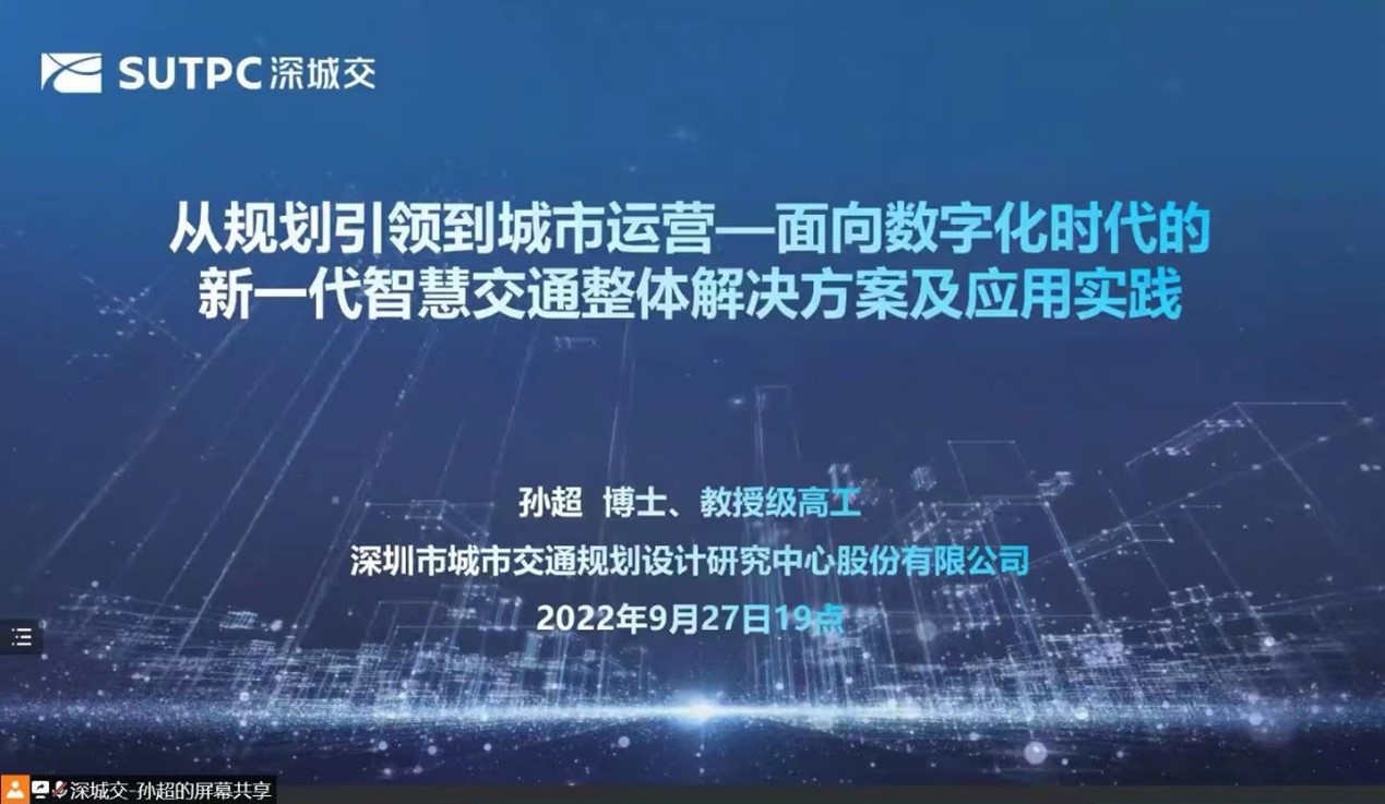 9月27日下午7:00-8:00,第490期同路人学术论坛与腾讯会议成功举行。本次论坛的主题为:从规划引领到城市运营——面向数字化时代的新一代智慧交通整体解决方案及应用实践。讲座邀请了来自深圳市城市交通规划设计研究中心股份有限公司的孙超博士为大家带来了精彩的讲座。