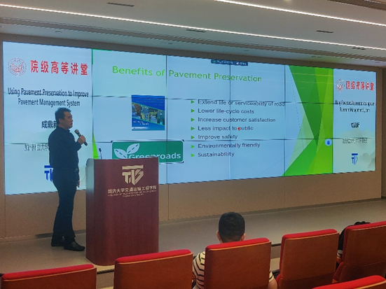 接着,成教授路面养护进行了新的定义。路面养护应当改进管理系统的创新以及保护包括计划和执行的工作以改善或维持处于良好维修状态的运输设施的状况。路面养护的好处包括保护以改善管理体系、延长道路使用寿命或可使用性、降低生命周期成本、提高客户满意度、降低对公众的影响、提高安全性以及建立环境友好型的绿色道路。