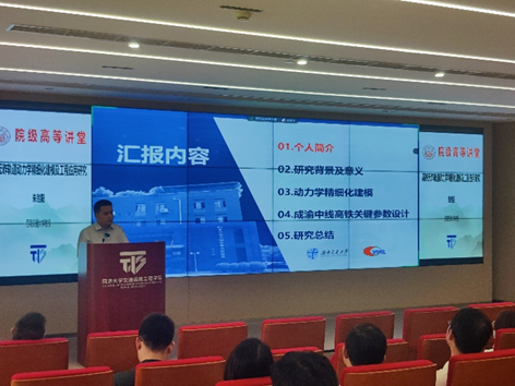 5月23日下午15:15-16:45,院级高等讲堂于伟德国际1946(通达馆)103会议室成功举行。本期高等讲堂特邀来自西南交通大学的朱胜阳教授,为在校师生带来了题为“高铁无砟轨道动力学精细化建模及工程应用研究”的精彩学术报告。