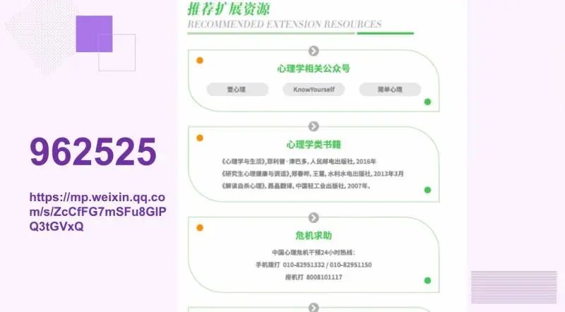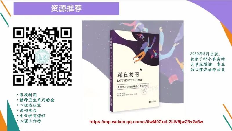 在讲座的最后,章老师介绍了校内和校外的心理咨询资源,欢迎有心理健康咨询需求的同学前来寻求帮助。