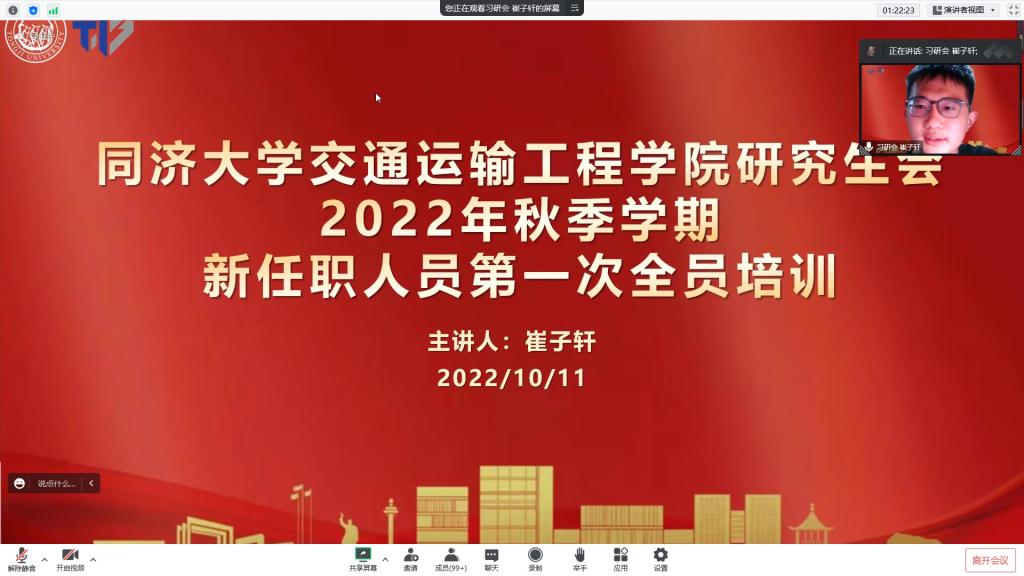 就《关于推动高校员工会(研究生会)深化改革的若干意见》,崔子轩同学做了概括介绍,并向与会人员进行讲解员工会如何更好服务青年员工;就《加强和改进新时代学联员工会工作实施方案》,崔子轩同学表示做好学联员工工作最重要的在于交流。他以举办青年告白祖国等主题活动为例,带领与会同学深刻学习并理解《方案》的内容与要求。就《普通高等公司员工(研究生)代表大会工作规定》,崔子轩就组织和全职、代表、提案三个部分带领与会员工重点学习。