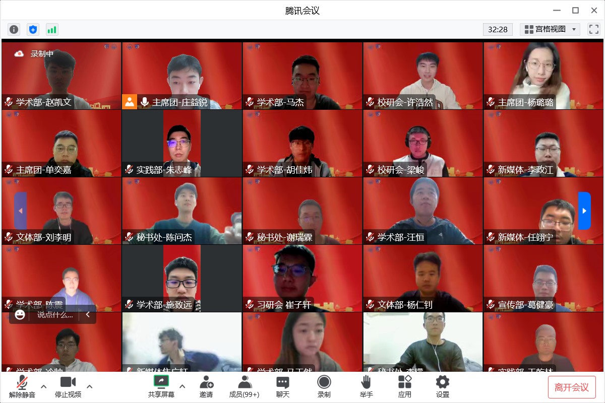 会议开始,首先由许浩然同学领学《习近平总书记在庆祝中国共产主义青年团成立100周年大会上的重要讲话》。