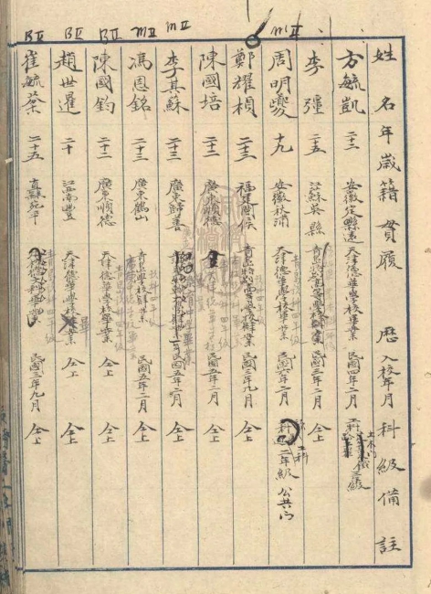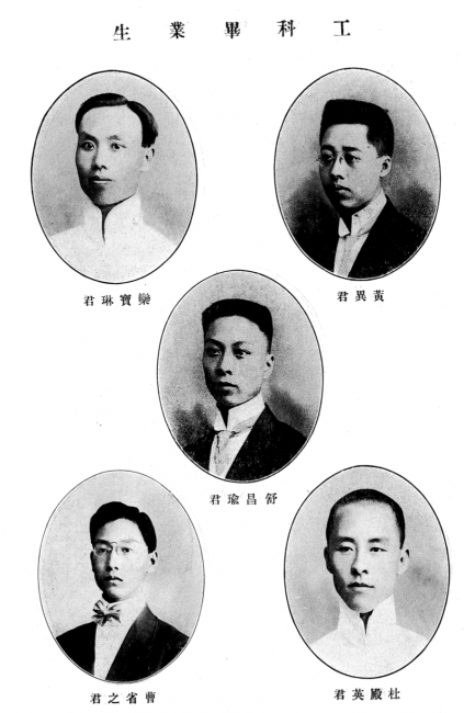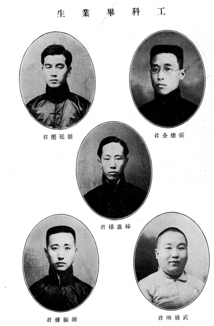 1916年首批工科毕业生,其中土木科毕业的有武培明、胡振声、钱廷櫆、韩家椹、谭文庆