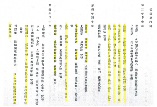 1909年《青岛德华特别高等专门学堂学表》中的规定显示,青岛德华大学-高等班-格致及工艺科-建造专门科的专业教学中设置了系统精细的交通学科教学计划,包含地土及街路建造、建桥、建筑铁路等课程,每门课程又涵盖了相当丰富的教学内容。可以说,德华时期交通类课程的开设及教学实践,是极具前瞻性的,是未来同济交通学科的萌芽,为同济交通学科的发展打下了基础。